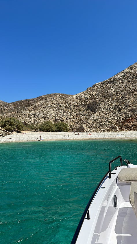How Folegandros is similar: Folegandros is a quieter, more intimate alternative to Milos (Milos has become especially crowded over the past five years), offering those dramatic cliffside beaches, crystal-clear waters (the clearest I’ve seen in the Cycladics!), and stunning sunsets. Its charming Chora (which I actually feel has a cooler vibe than Milos’ Plaka) and small, natural beaches make it ideal for those of you seeking the low-key, relaxed vibe you were going for with Milos. It’s the perfect island for lazy swims, simple tavernas, and breathtaking views without the crowds.