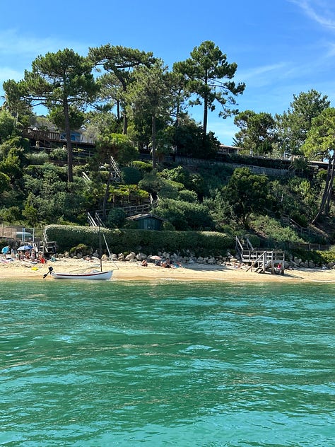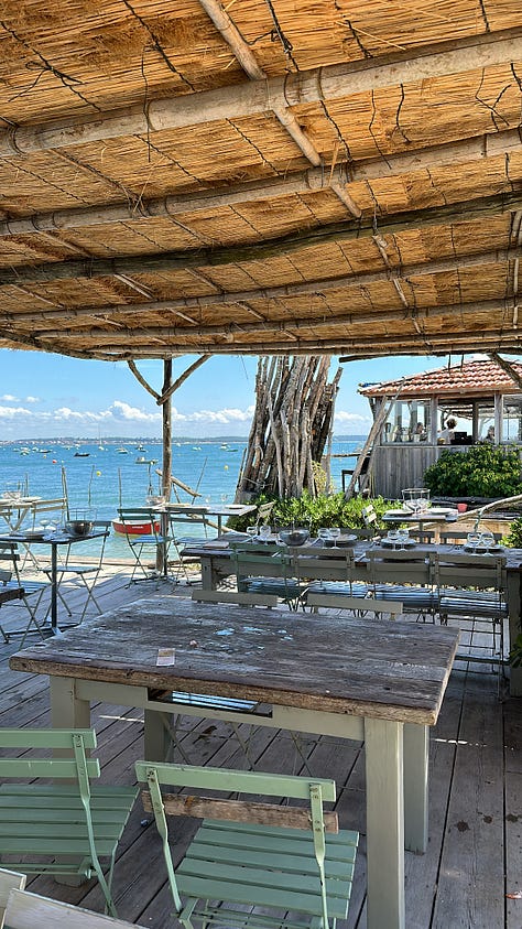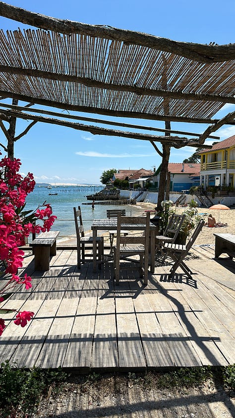 How Cap Ferret is similar: Cap Ferret and Île de Ré both offer the quintessential French coastal escape on France’s western coast that feels effortlessly chic but relaxed. They really capture the same spirit. Though Cap Ferret has a wilder, more elemental summer energy. I’d venture to say it’s a bit quirkier. A narrow spit of land between the Atlantic and the Bassin d’Arcachon, it’s known for pine forests, sandy bike paths, oyster shacks on stilts, and raw ocean beaches that feel untamed and expansive. You have the wild Atlantic surf on one side, glassy basin waters on the other, and similar to Cap Ferret, long bike rides through the pines followed by plates of oysters, shrimp, and crisp white wine at a cabane. With just a few shops and restaurants on the one central commercial street Boulevard de la Plage, there’s no real “scene,” in Cap Ferret or a proper “town center”—just quiet money, family houses passed down generations, and a deeply French sense of understatement. Here, nights are early, mornings are salty, and the luxury is the return to an easy, unfussy summer.